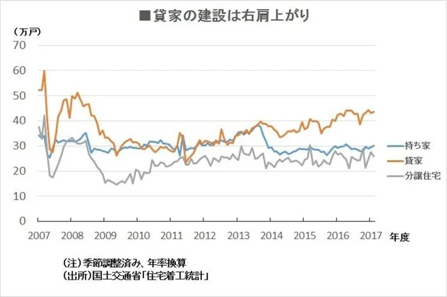同社の藤井和之・新事業開発部長は「賃貸住宅の着工数はリーマンショック前の水準に戻っただけでまだバブルではない。しかし、この状態が2~3年続くとバブルとなるかもしれない」と指摘する。
