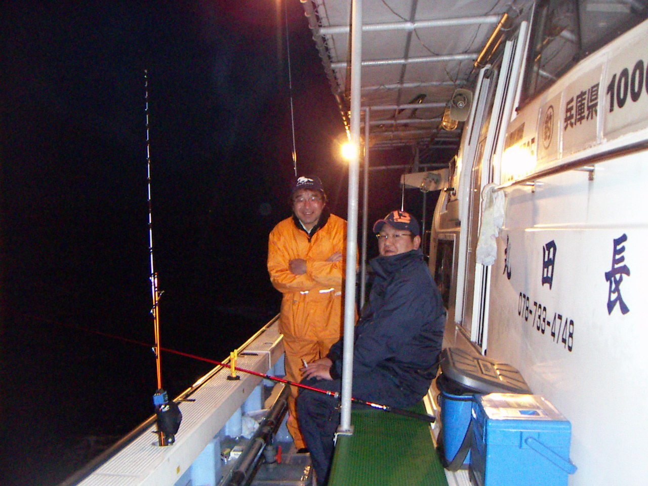 出船前の船上で、伝助君とのペアショットです。マッチョシゲさんが関西遠征した時の写真ですね。二人が並ぶと下ネタの雰囲気が漂います・・・釣りは品良くやりましょう!