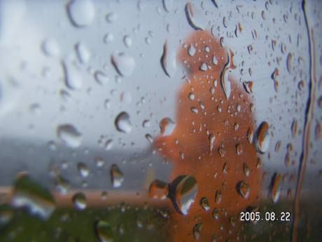 雨の中、釣り続けるマッチョシゲさんです・・・・この時は、スコールのような強い雨が急に降り出して、合羽を持っていなかった私はキャビンへ避難・・・ほとんどの方々も同じでしたが、合羽を持参していたマッチョシゲさんは師匠の命令で釣りを続行・・・「マッチョシゲさんが釣りをしないと、船上で釣る者がいなくなっちゃうから、頑張って釣りなさい!」・・・・その間、数十分間、何にも魚は釣れなかったような・・・(ヒヒヒ)