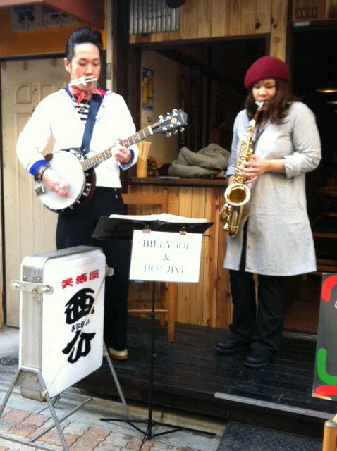 近くで昼市をやっているので、あえて店の軒先で演奏させてもらい、ほぼ路上演奏状態でした。