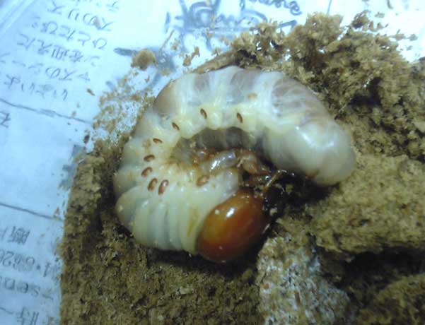 しかも顎でオガをかき分けるのは上手いのですが、足を上手く使う事ができないらしく