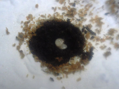 通常ローゼンは材の中に産卵室を作り、その中に産卵した後、卵の上に自分の削り屑をかけて