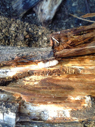 ソロリソロリと近づいて、数本木を見てみると…おぉ!!ウチにある産卵木(ホダ)にソックリ!