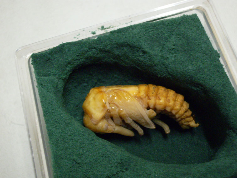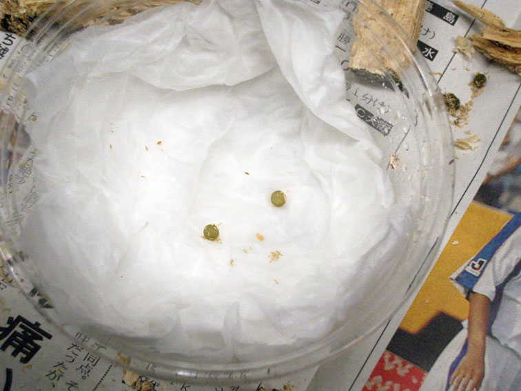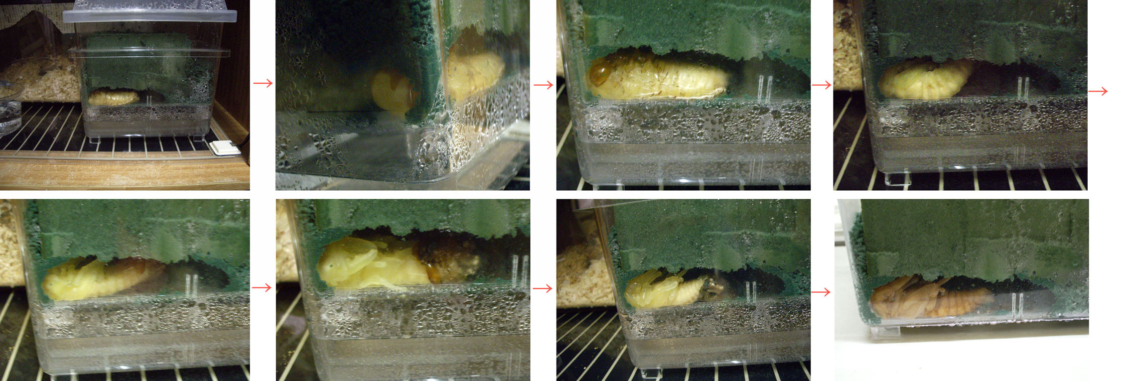 人工蛹室に移した彼は慌てて寝返りを打って背中を上にしていましたが、