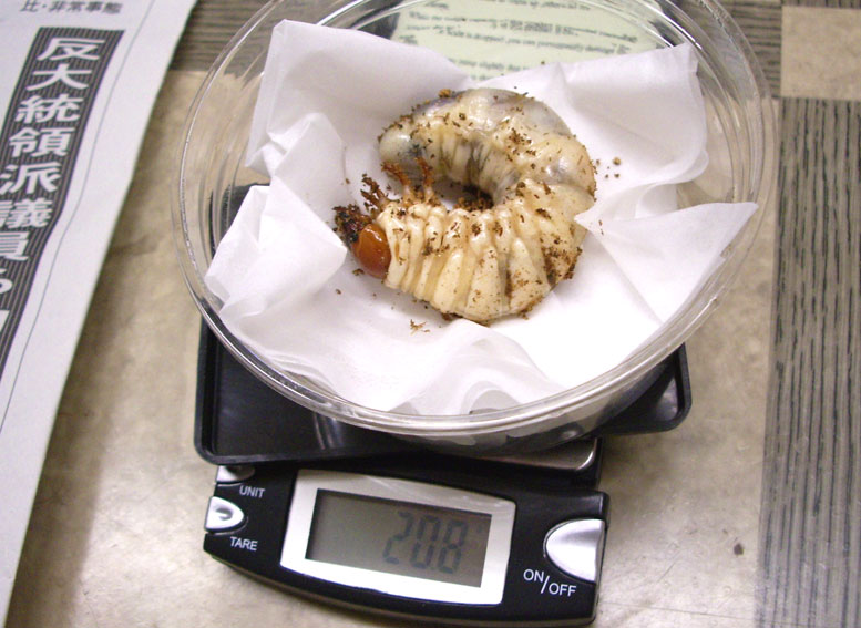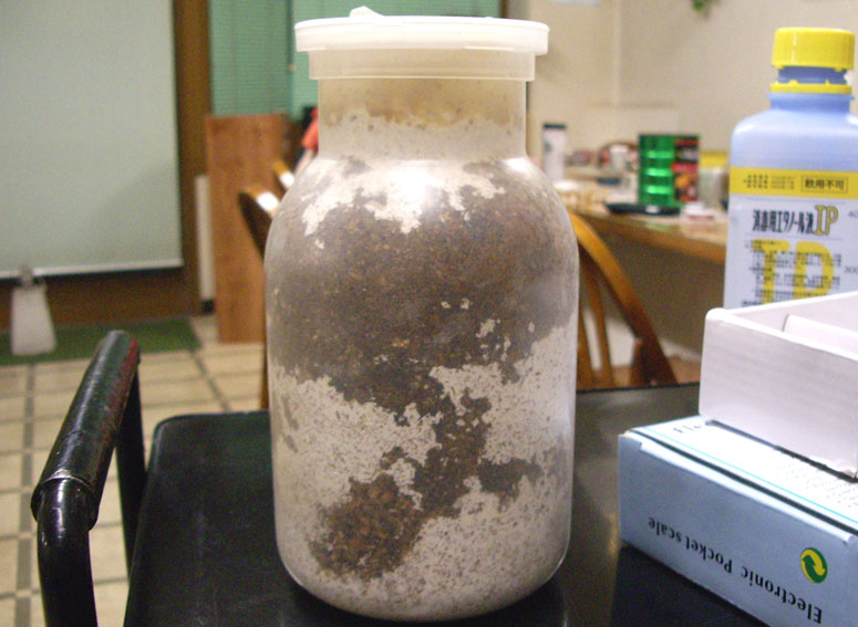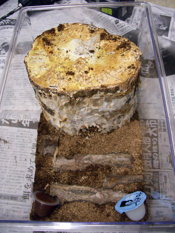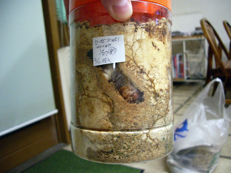 モチロンちょっと早めなのですが、コイツに使った菌糸…実はだいぶ前に詰めた菌糸だったので