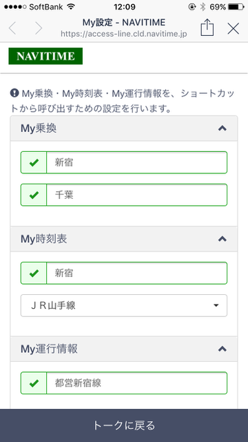 よく使う駅や路線を登録して、乗り換え案内をワンタップで確認することができる機能もあります。