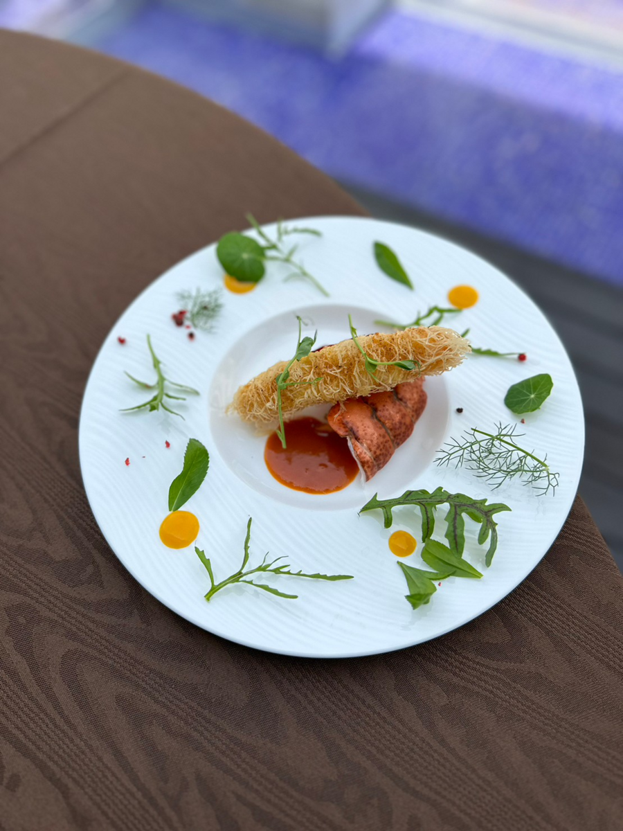 ▪️ポアソン:オマール海老とカダイフ巻き ハーヴの香り ソースアメリケーヌ