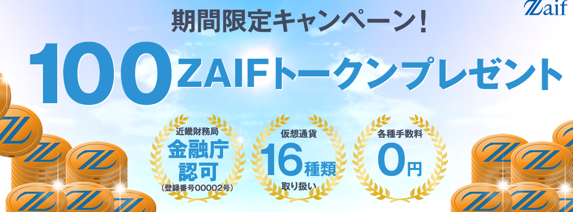 Zaifは2018年8月末までの口座開設で「100Zaifもらえる」キャンペーン中です。