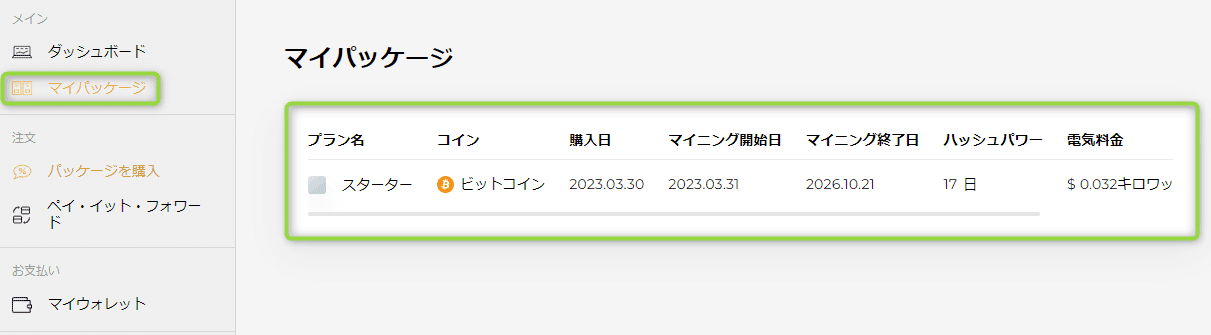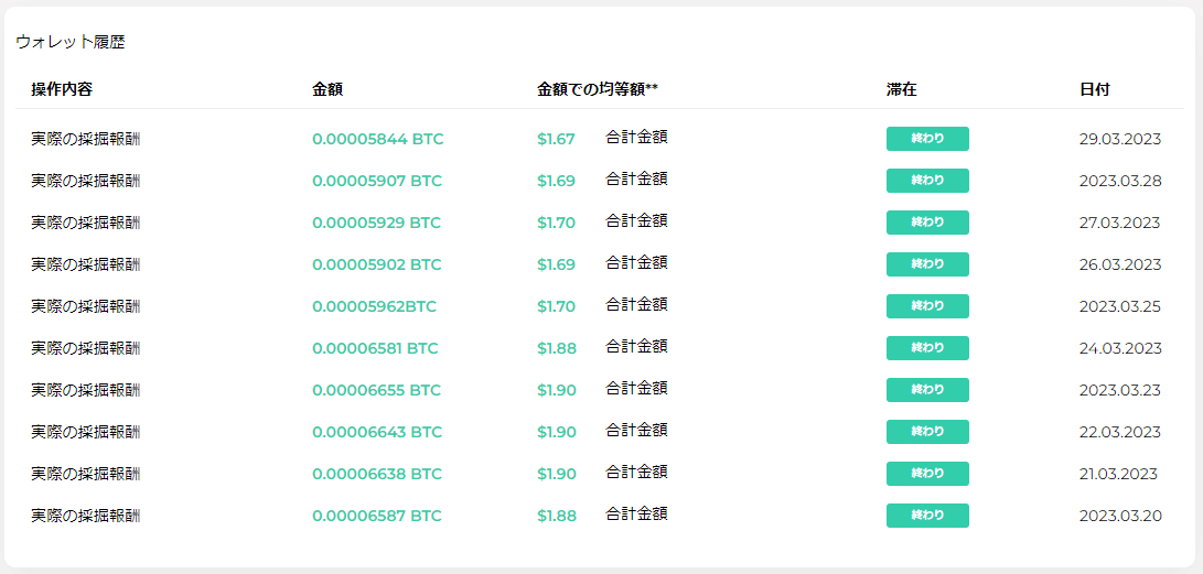 選択したマイニングプランにて発生したマイニング報酬を本当に獲得する事ができます。