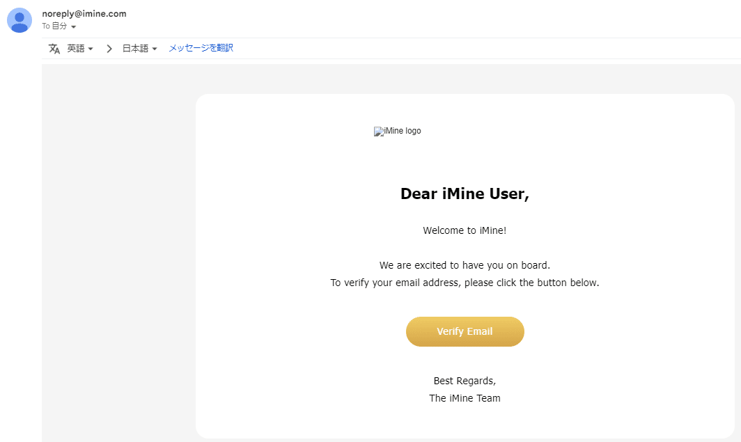 「Verift Email」を選択すると、アイマインのアカウント登録は完了となります。