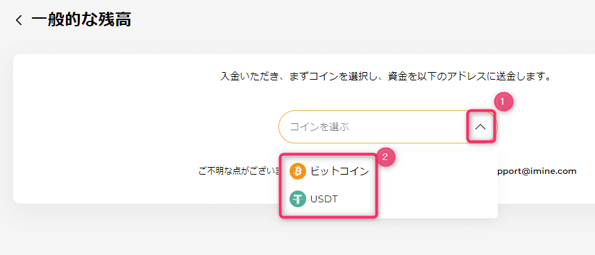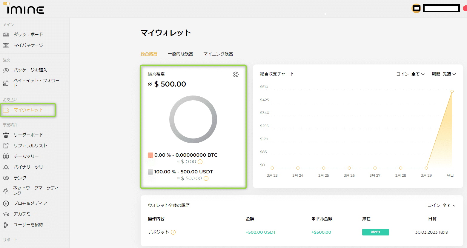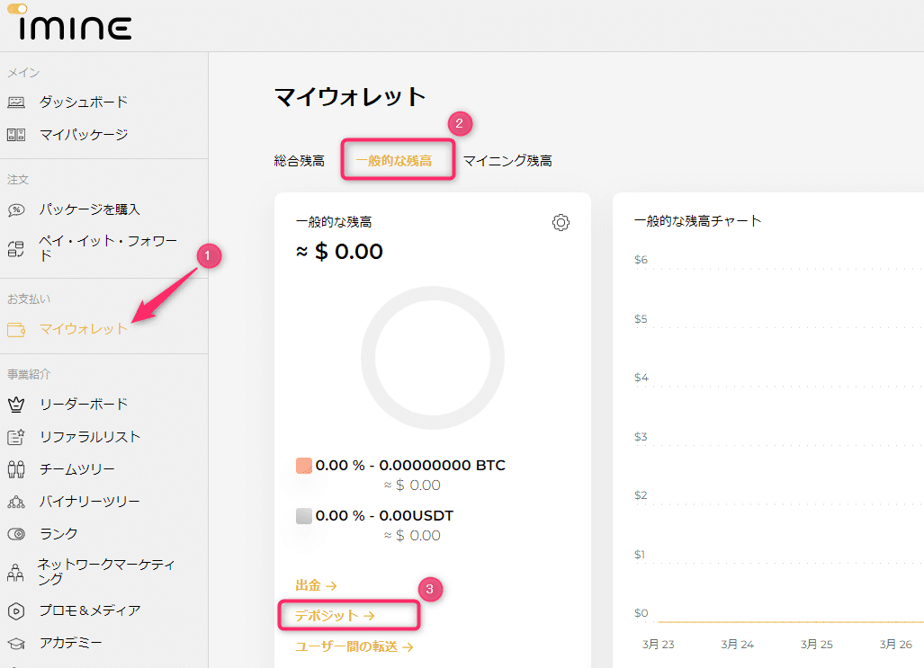 アイマインのご自身のウォレットへ入金する操作手順は以下となります。