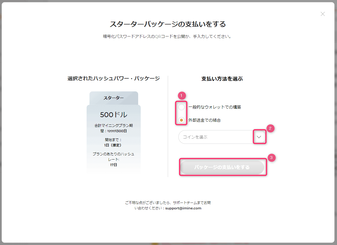 ※事前に入金操作を行わなくてもマイニングパッケージの購入は可能です。