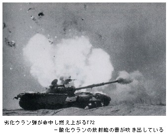 劣化ウランは、原発の燃料としては使えないのですが、鉛より1.7倍も大きい、非常に大きい密度を持ち、また非常に堅いため、放射能による被害を考えなければ、戦車や装甲車両の装甲を打ち抜くための砲弾(装弾筒付有翼徹甲弾(APFSDS)という特殊な砲弾)の材料としては最適な物質です。1991年の湾岸戦争では、劣化ウランは戦車砲弾や航空機の機銃弾として使用されていましたが、1997年以降アメリカは、貫通爆弾や巡航ミサイルなど、さまざまな兵器に劣化ウランを大量に使うようになっていると言われています。