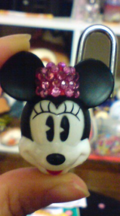 ☆゜+.☆゜+.☆゜+(●´ェ`●´д`●´ェ`●)☆゜+.☆゜+.☆゜+みにいの南京錠デコったよお~wストーン買ってなかったから大き目のでね…これあとミッキ-スティッチプ-があったから全部買ってデコるつもりぃ--