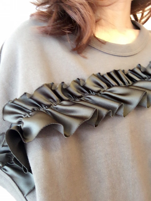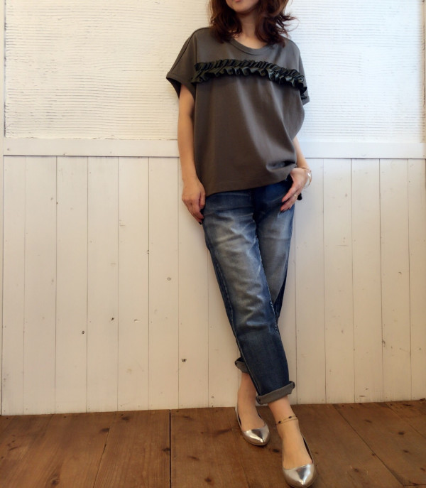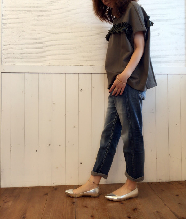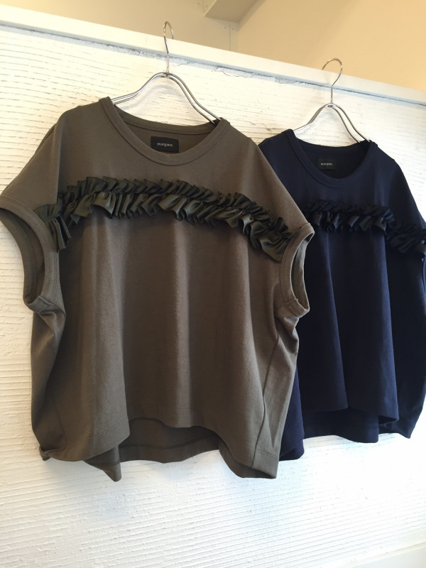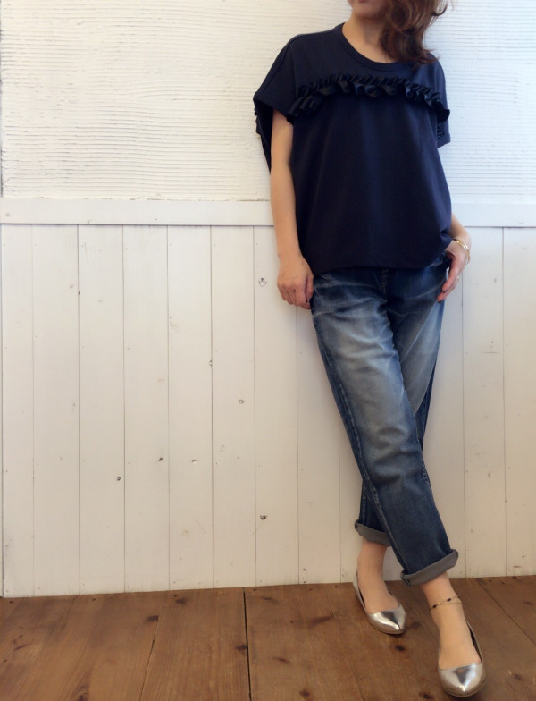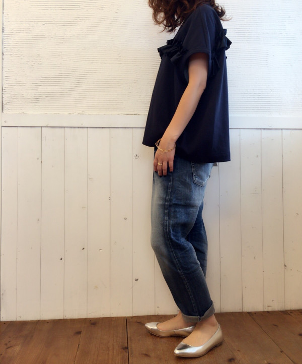 margauxから秋物新作! フリルが甘すぎず、可愛いmargauxの新作‼️ゆったりめで着心地も良いです♡ デニムもmargaux19000+tax 背中にもフリル入ってますよん khaki/navy12000+tax via blanco atago Your own website, Ameba Ownd