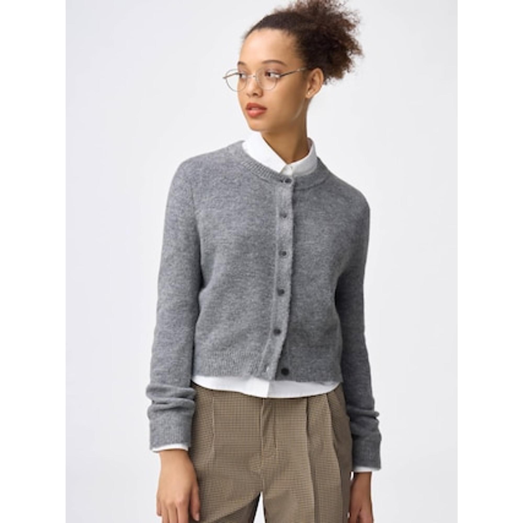 トップスはGUのパフニットクルーネックカーディガンで色はパープルです。温かいところ、肌触りの良さ、上品な色味が気に入っています。気に入りすぎて、後から色違いのブルーとナチュラルも購入しました。只今セールで1290円になっています。