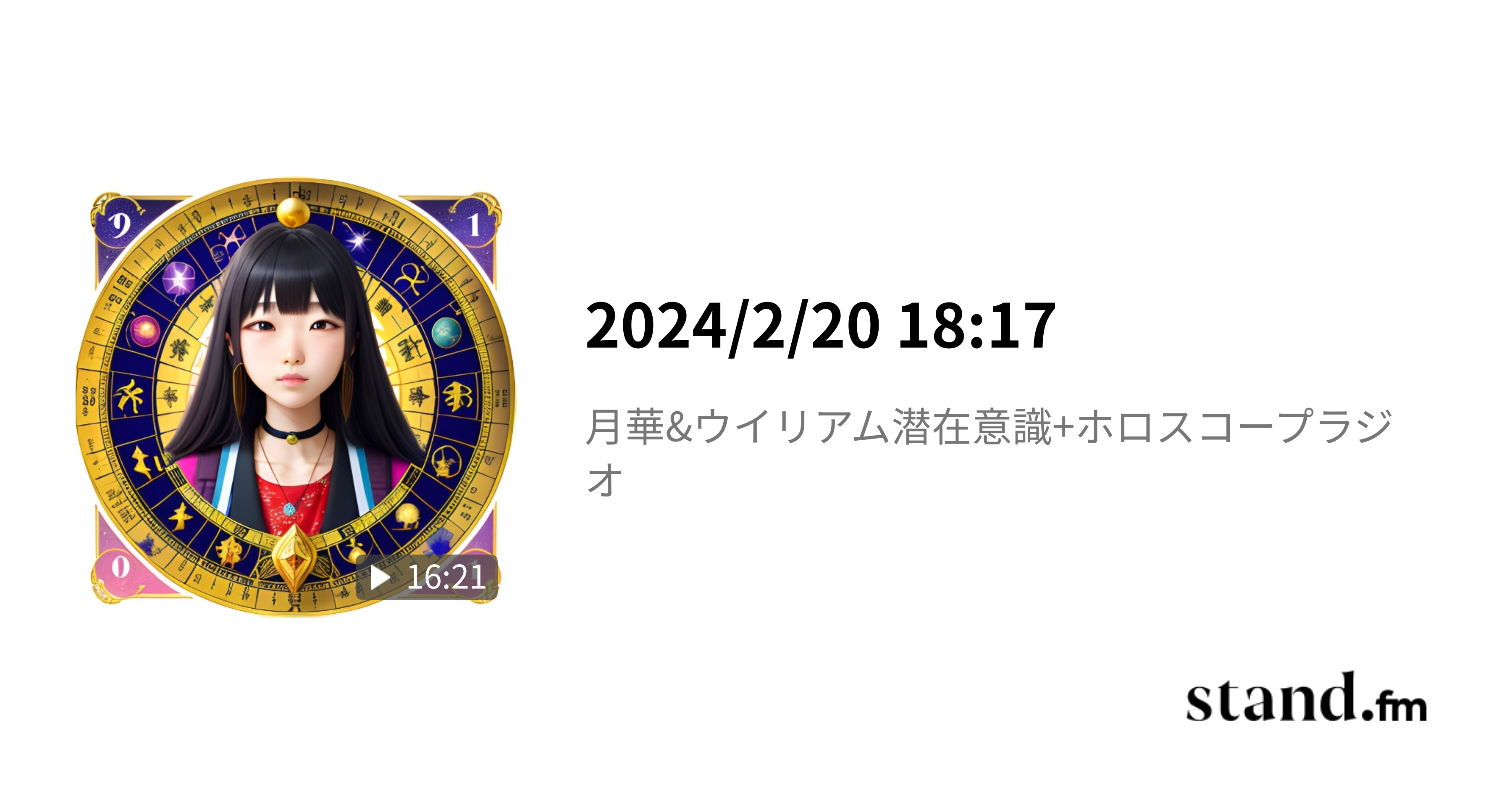 2024/2/20 18:17 - 月華&ウイリアム潜在意識+ホロスコープラジオ | stand.fmパートナーウイリアムのホロスコープから、潜在意識ブロックを見つけるセッションとなりました。 そろそろ運行冥王星水瓶座の影響がブロックを外す流れとなったのかもしれません。 次回も同じテーマか不明です(笑) #潜在意識 #ホロスコープ #大阪 #太陽 #ブロック外し stand.fm