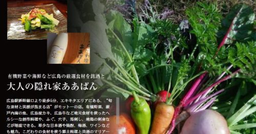 大好きな広島を笑顔と元気に 感謝で店内営業しています! (広島県の指示に従い営業中) 地産地消の有機野菜と瀬戸内の海鮮創作料理を堪能 全国各地の日本酒も楽しめます!