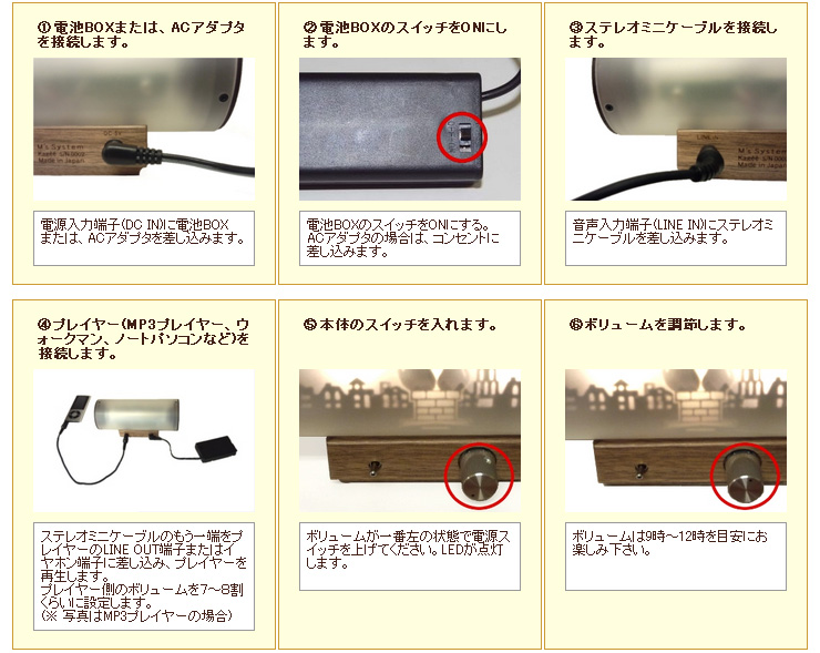 アンプが内蔵されているので、お手持ちのプレイヤーを付属のケーブルで接続するだけで簡単に豊かな音の広がりをお楽しみいただけます。電源のない場所でも使用できるよう電池BOXが付いています。