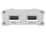 出力側のUSB端子はデュアルポート仕様。片側が電源とオーディオ信号の2つのUSB端子に分かれた、同社の「GEMINI デュアルヘッドUSBケーブル」も使用でき、スマートフォン/タブレットや、同社のポータブルアンプ/USB DAC「micro iDSD」への急速充電も可能。消費電力は15W以下。外形寸法は68×87×28mm(幅×奥行き×高さ)、重量は約141g。