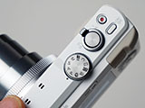 軍艦部にはモードダイヤル、シャッターとズームレバー、動画撮影ボタン、電源ボタンがある。動画と電源ボタンの位置が近く、手探りだと押し間違える可能性が高いところは減点ポイントだが、シンプルな作りは好感が持てる。