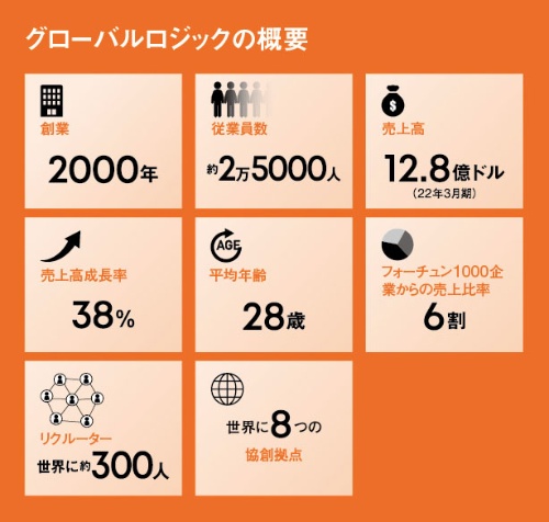 グローバルロジックは00年の創業で、米グーグルや米オラクル、韓国のサムスン電子など世界有数の企業を顧客に持つ。22年3月期の売上高は12億8000万ドル(現在の為替レートで約1770億円)で、前の期に比べ38%伸びた。