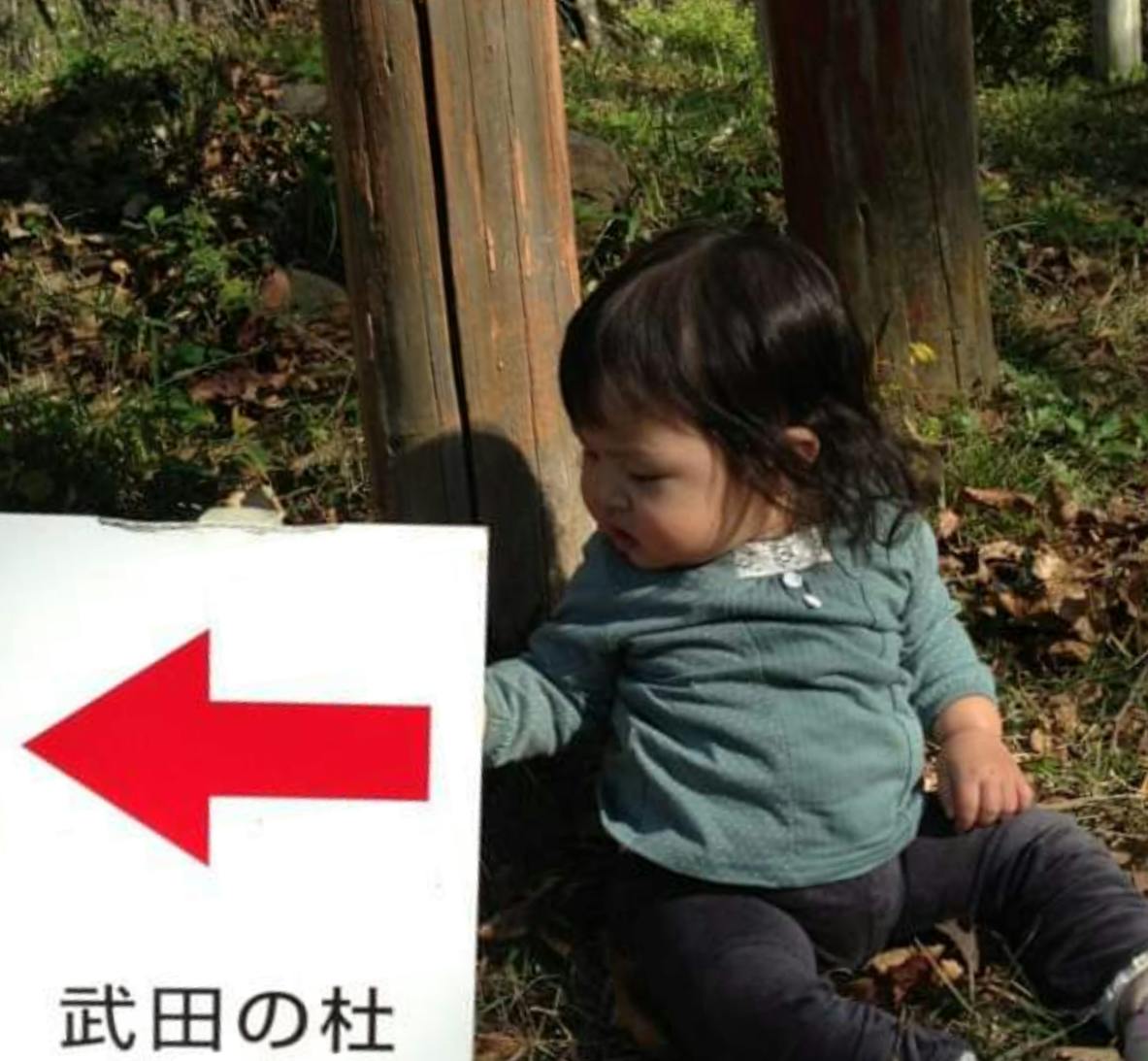 84人1歳で初めて靴を履いて歩いた1歩目の場所は甲府市の「武田の杜」でした。