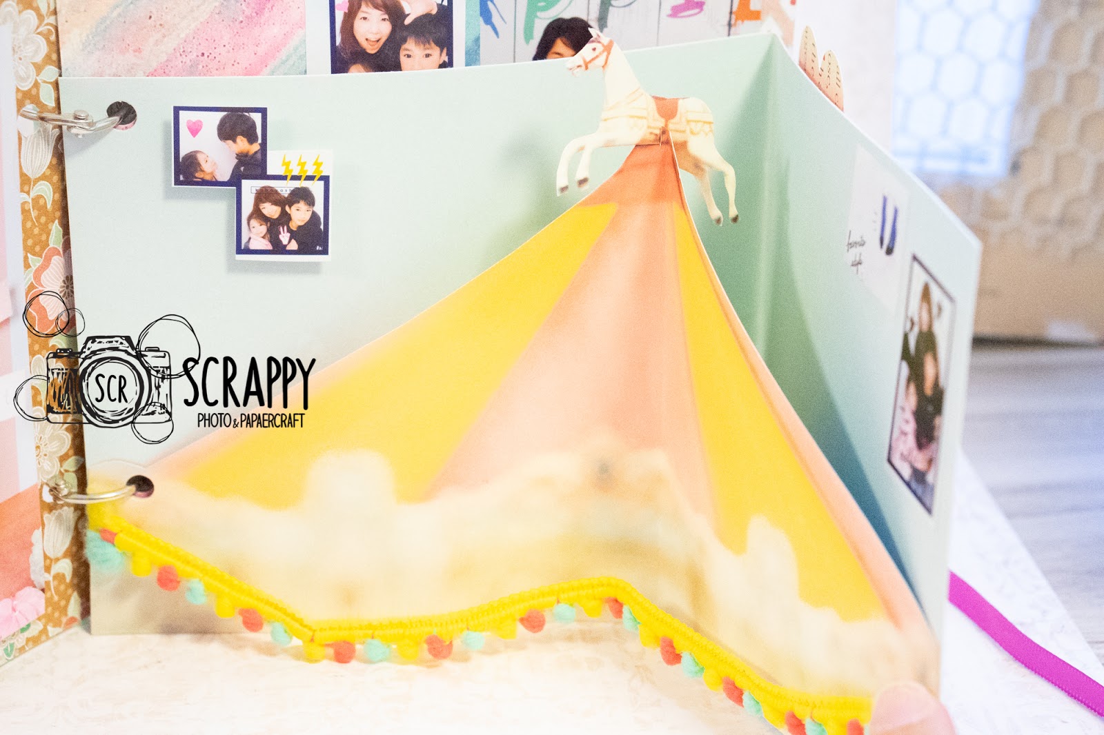サーカス、ユニコーンなどなどのペーパーを組み合わせて作りました。