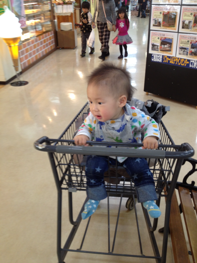 成長!旦那さんの実家へいく途中に寄ったショッピングセンターでカートに乗ったよ!もうカートにも乗れるようになったなんて。。。何だか成長を感じる最近は木の汽車の穴にブロックを入れたり、ミニカーをきちんと走らせられるようになったり、一瞬立っちしていたり。。。本当にすごく成長してる!!!何より指差しとか表情とかで、龍くんとコミュニケーションが取れるのが嬉しいねお話が出来るようになったら、たまらないな大変なことも相当増えるだろうけどね(笑)龍くんもニコニコでカートに乗ってて良かったおばあちゃんとおじいちゃんにも会えて、本当に楽しかったね!