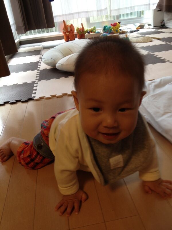 ニコニコ復活!ネットで色々と調べたら、7、8ヶ月の頃は色々と分かるようになる分、赤ちゃんにとっては不安が大きくなる時期らしい!きっとシンガポールから帰ってきて、初めての場所へきた感じで不安なんだろうな。。。ということで、今日は抱っこ&おんぶでたっぷりコミュニケーション!起きてる間は、なるべく龍くんと一緒にいられるようにしたら、だいぶニコニコが復活本当に本当に良かったー!!!何かホッとした