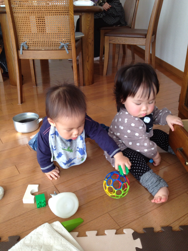 お友達!今日は、あかりちゃんとママが遊びに来てくれたよもう何回も会ってる2人!龍くんはあかりちゃんの後を追い回して、真似っこして遊んでたよおとなしいあかりちゃんをみて、ちょっと女の子もいいなぁって思っちゃった