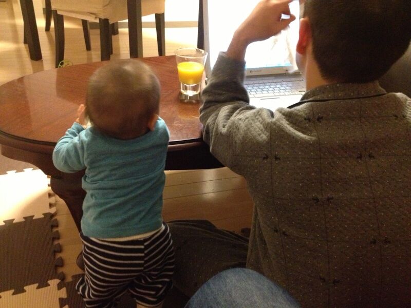 最近、パパがパソコンしていると横でマウスを奪う龍くん!