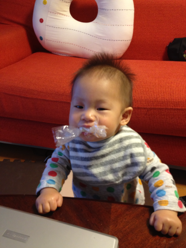 積み木二段目、積めるようになったよ!しかも細長い積み木を立てて積めるようにもなってて、ビックリそれと最近のブームは、ワンコ咥えガムシロップやチューブをドヤ顔で咥えてる。。。今日はゴミのビニール袋竹富島の猫だね!