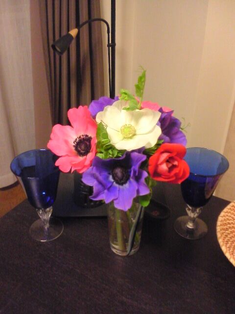 お見舞い♪旦那さまのお祖母様のお見舞いに行ってきました。一昨日お手洗いで倒れたと聞いたときは、本当にビックリしたけど、すっかり元気そうでした♪ただお義母さんが看病で大変そう。。。。いつも頼ってばかりなので、しっかりしなきゃって思いました。お花も喜んでくれて良かったですただ救急病棟なので飾れないということで貰って帰ってきました。アネモネとっても艶やかな色合いで好きです!