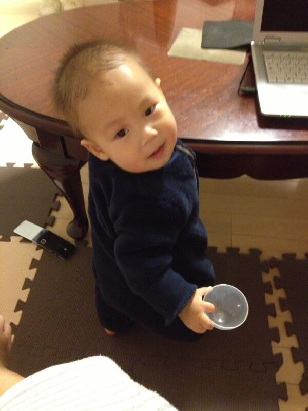 ねんね前のミルクを飲んでご機嫌の龍くん!