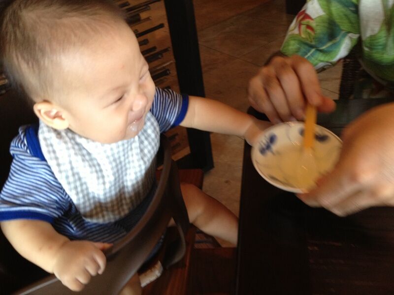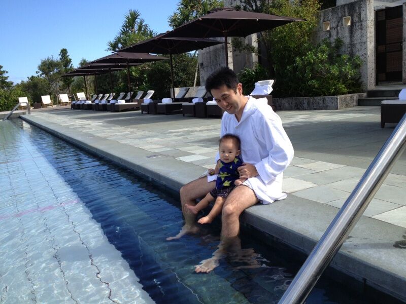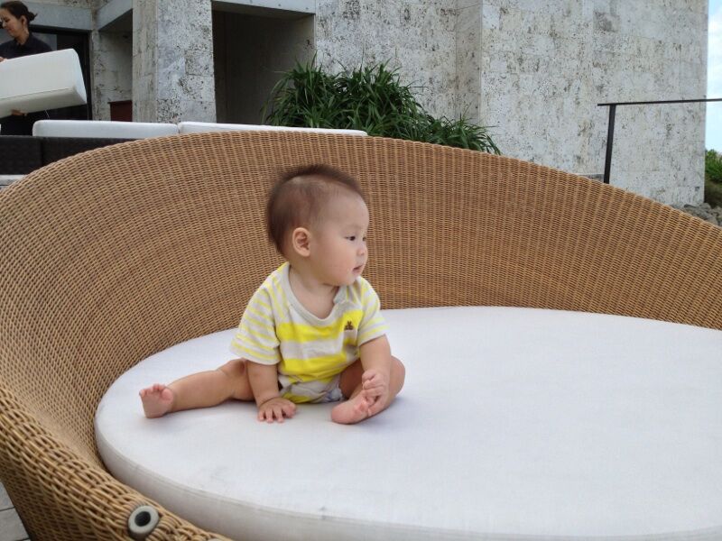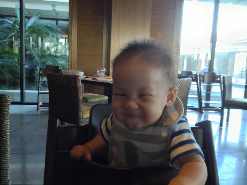 沖縄 10/17~20旦那さんが連休だったので、沖縄へ今回もホテルでのんびり!東屋でお昼寝したり、プールに足をパシャパシャしたり、お粥やパイナップル&レモンを食べたりと楽しく過ごせたね!行き詰まっていた離乳食も、ホテルのお粥とお味噌汁で作ったらパクパク食べてくれたし、沖縄そばのスープやカボチャの煮物の裏ごしも食べたね。龍くんは、少し味があった方が好きみたい。ストッケのハイチェアもご機嫌で座ってて、お食事Timeがすごく楽しかった!飛行機も行きは、40分位しか寝なかったから少し大変だったけど、帰りは2時間近くグッスリ寝てくれたから楽々本当に楽しかったね!今回の旅行でまた成長した気がするね