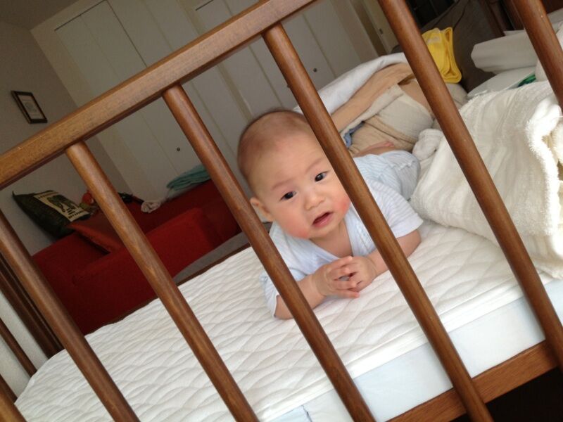 まだ唸りながら寝返りするけど、そのうちコロンコロンと寝返りできるようになるのかな?