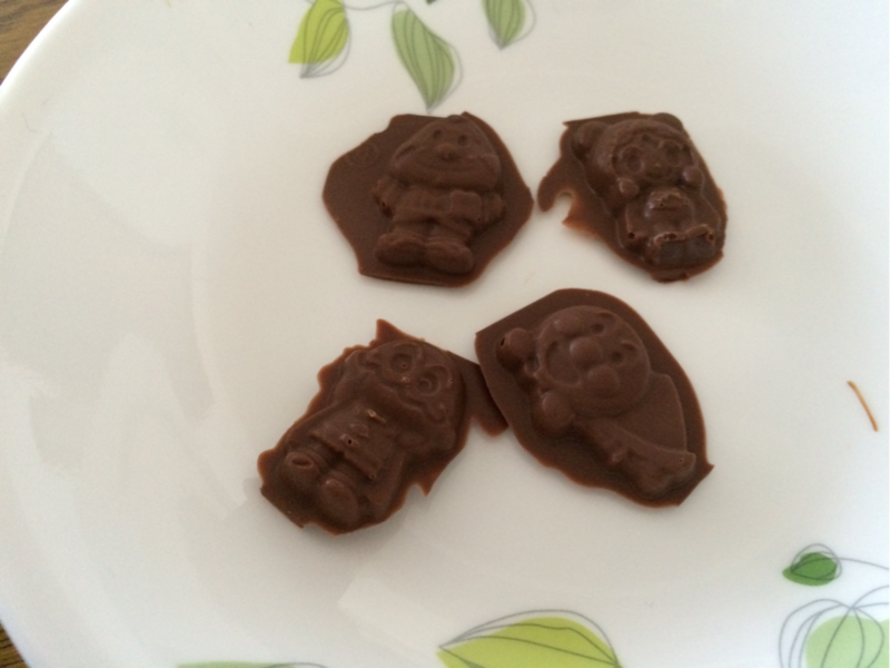 グミのアンパンマンの型を使って、湯煎したチョコを入れるだけ(笑)