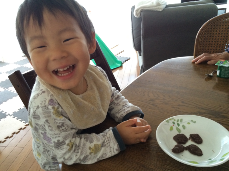 翌日の朝、固まったチョコをみて、大喜びだったね