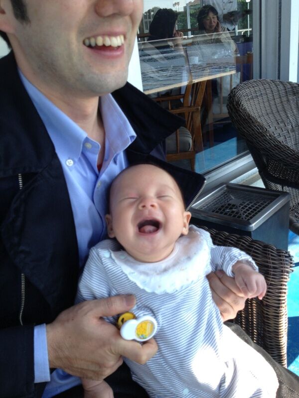 龍くんも初めての海にニコニコ