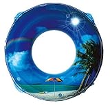 置き去りにされた浮き輪2つを、温水シャワーで洗ってから、ふ~ふ~でふくらました。空ビ臭とふ~ふ~の感触から両方新品だと確信。ふ~ふ~の音が高くなるまでパンパンにふくらましても大丈夫、心配していた空気漏れはなかった。