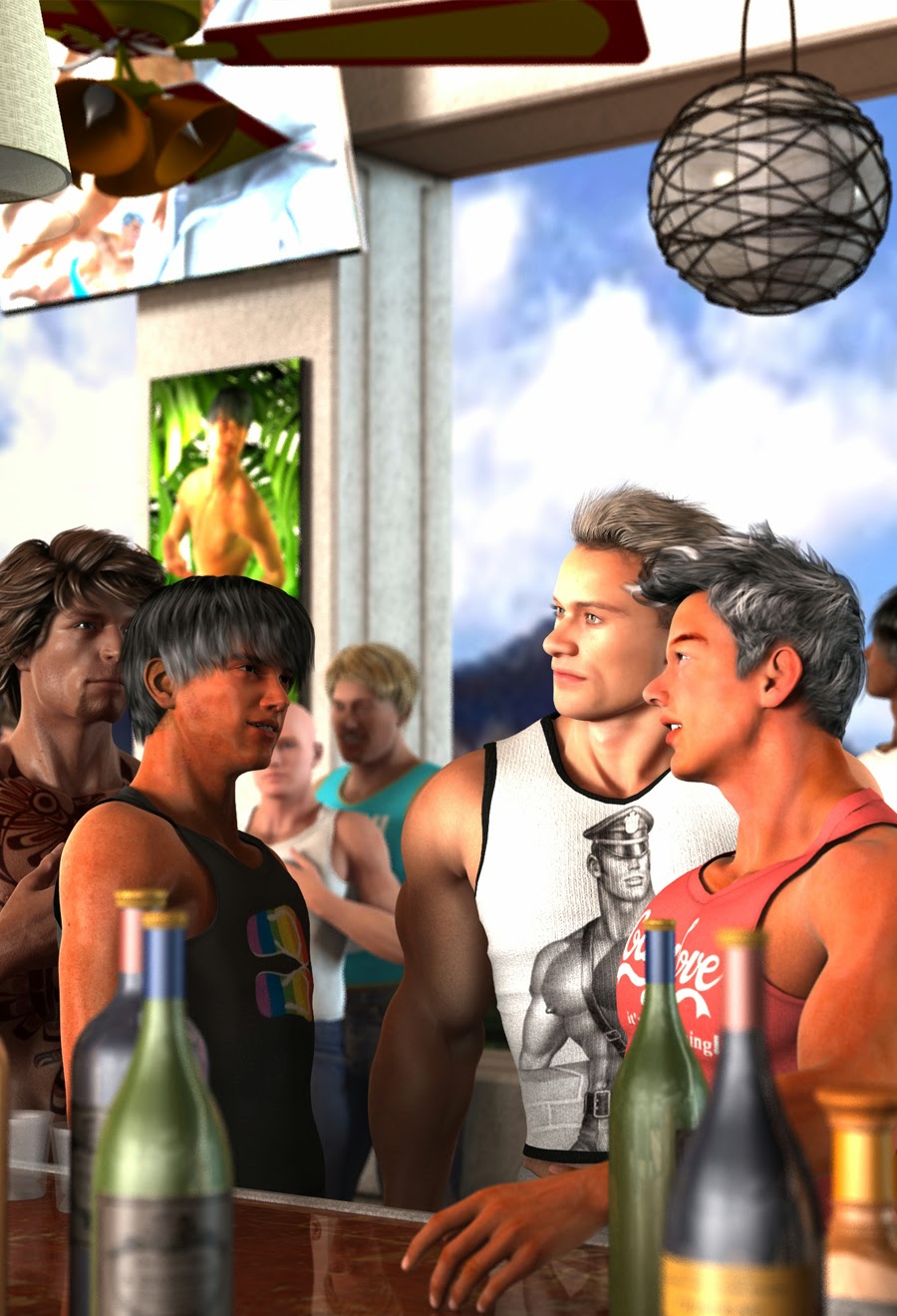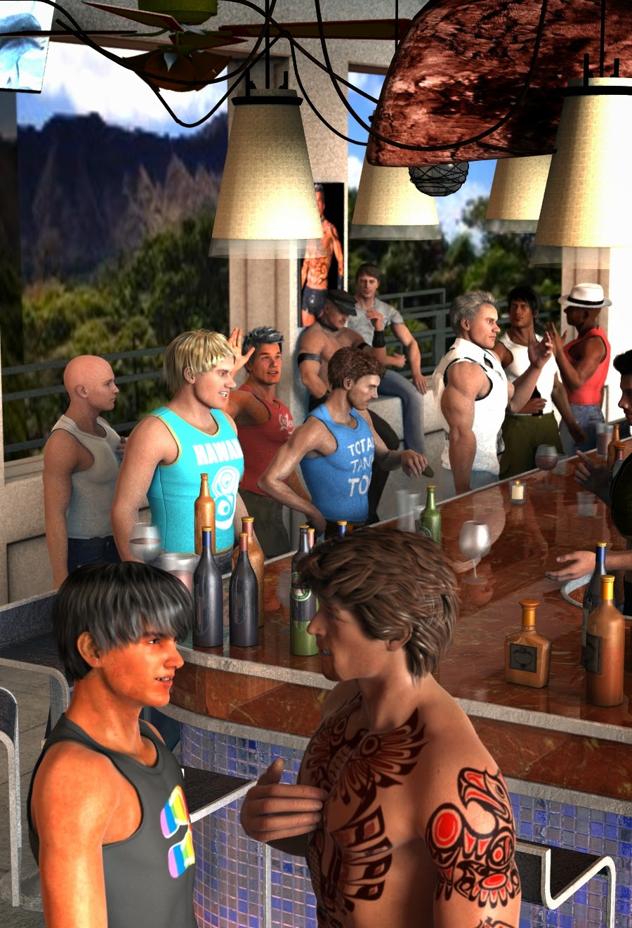 第一章の出だしでジムとハナレイがクイーンズサーフで出会い、次の週末に一緒に泳ぐ約束をして、その後に彼らはワイキキの中心にあるゲイバー「アングルズ」でも再び顔を合わすことになります。