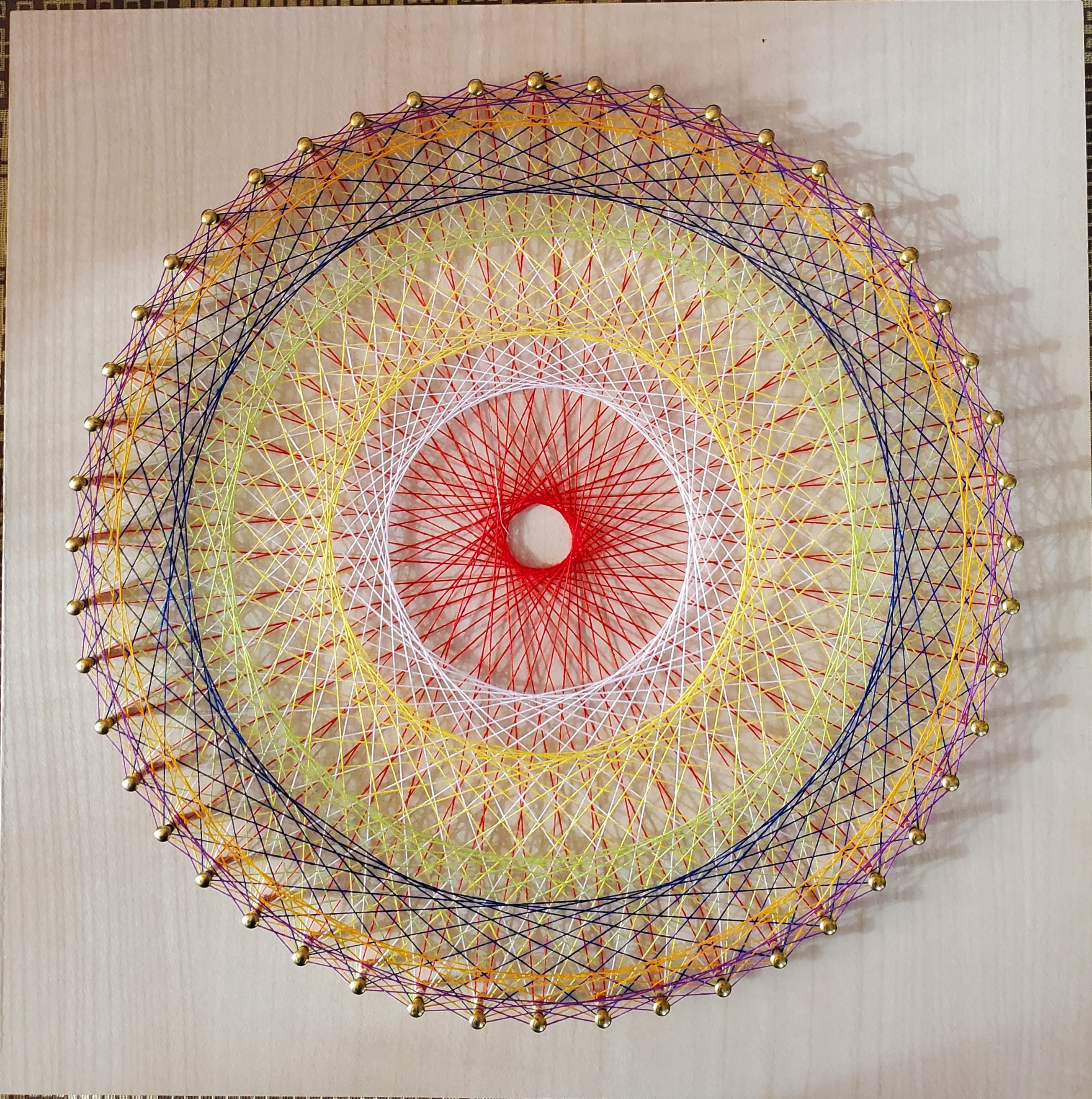 糸かけ曼荼羅の体験会に向けて。糸かけ曼荼羅の体験会をするための資料作ってました。 掛け方の画像を載せるために完成した糸かけ曼荼羅。 ちょっと、糸を足して雰囲気変えてみました。 全体的に白っぽく写ってしまいましたが、実際はキラキラしてます。 こちらが手を加える前↓