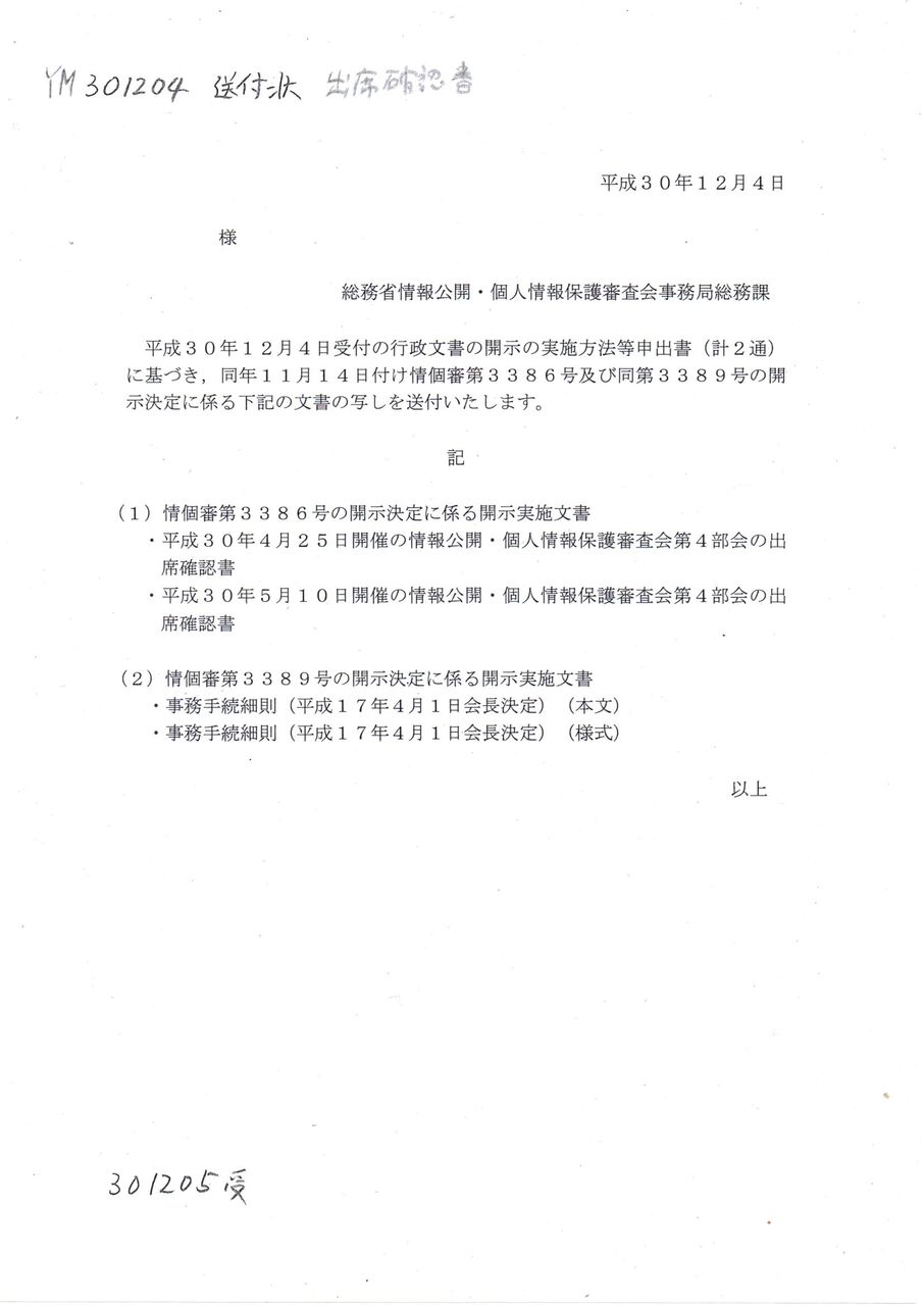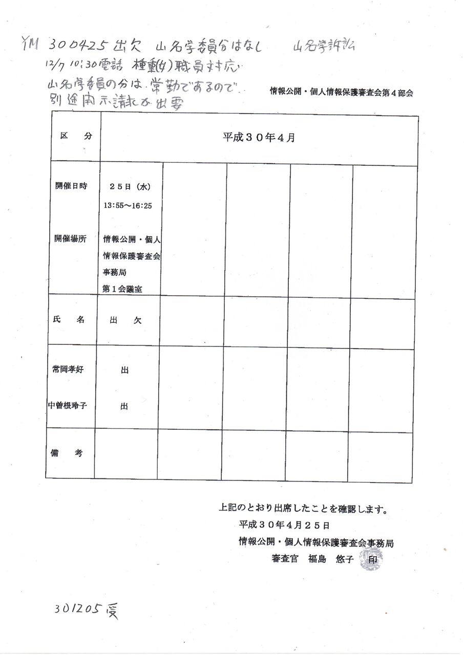 画像版 YM 平成30年12月4日 出席確認書 山名学訴訟 福島悠子審査官