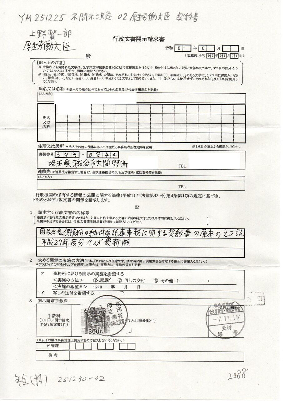 2 YM 251225 不開示決定 02厚生労働大臣 契約書