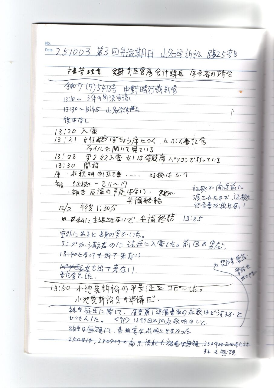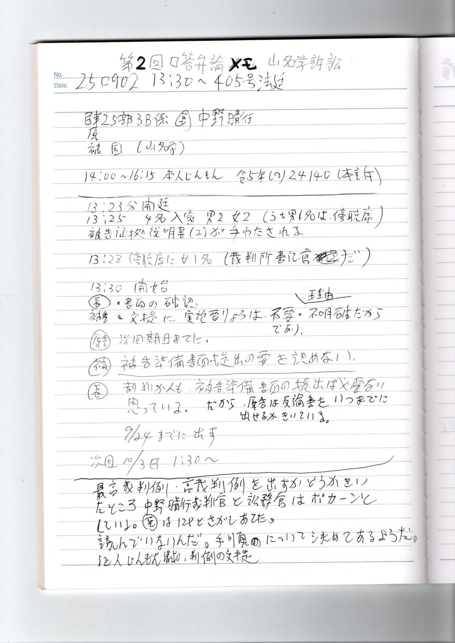 YM 251003 第3回弁論メモ 山名学訴訟 中野晴行裁判官