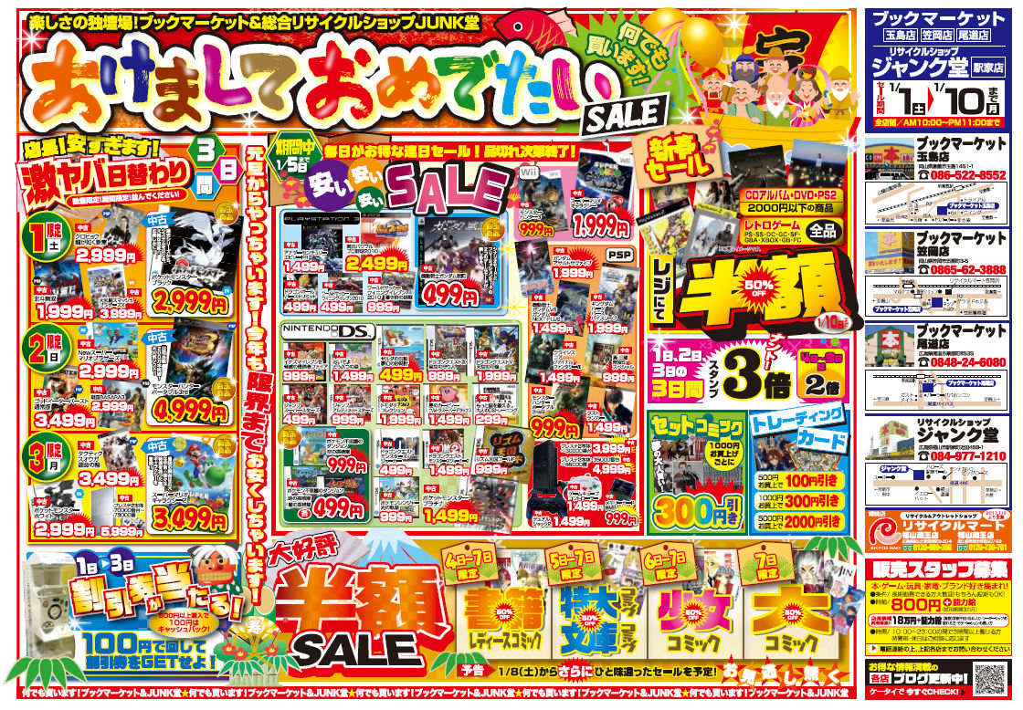 モンスターハンター ポータブル 3rd を 大特価 で 販売 しますあけましておめでとう御座います今年もよろしくお願いします(・∀・)つブックマーケット玉島店は元旦から営業していますε=ε=(;´Д`)あけましておめでたいSALEも開催しています欲しかったソフトが、お正月大特価にて販売中!!!初詣帰りは、是非御来店お待ちしております(゚∀゚)アヒャヒャ