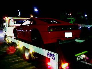 破裂音がしてから距離的に1キロ程しか走ってないので、エンジンオイルも十分に入ってるということで、積車にはエンジンをかけて自走で乗せました。←ひっぱられる傷がつきそうで嫌なんで。。。。