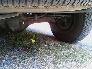 オフィス近くに借りているデリカバン用の砂利駐車場なんですが丁度デリバンの真下にタンポポが生えてるんですわ。