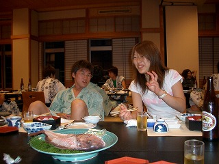 温泉に使った後、鯛の刺身など、美味しい料理に舌鼓を打ちました!